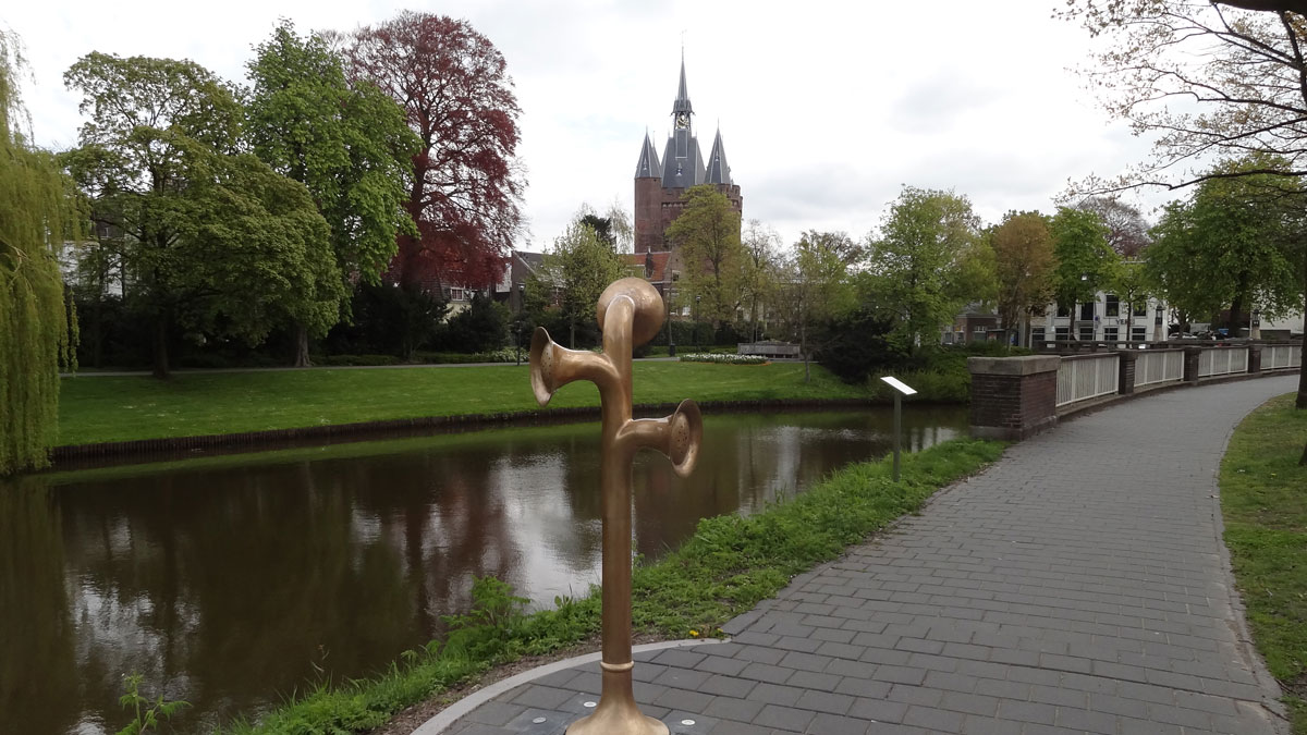 We kwamen op de burgemeester van Roijensingel, met de binnenstad van Zwolle aan de overkant van het water.