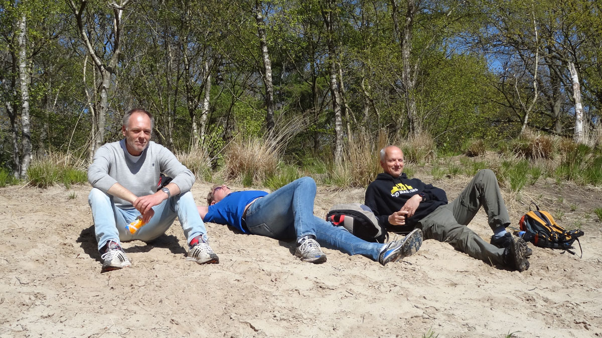 In het bos was een klein vennetje waar mensen hun hond in lieten zwemmen. Wij vonden het een mooie plek om nog even bij te komen in het zonnetje.